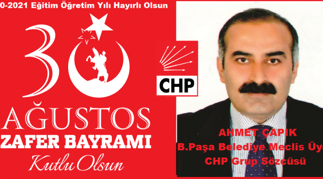 Bayrampaşa Belediyesi CHP Gurup Sözcüsü Ahmet Çapık 30 Ağustos Zafer Bayramını ve Yeni Eğitim Öğretim Dönemini Tebrik Etti.