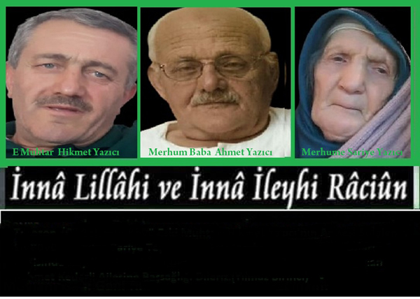 Gazetemiz adına merhume teyzemize ve merhum amcamıza Allahtan rahmet kederli ailelerine başsağlığı dileriz.