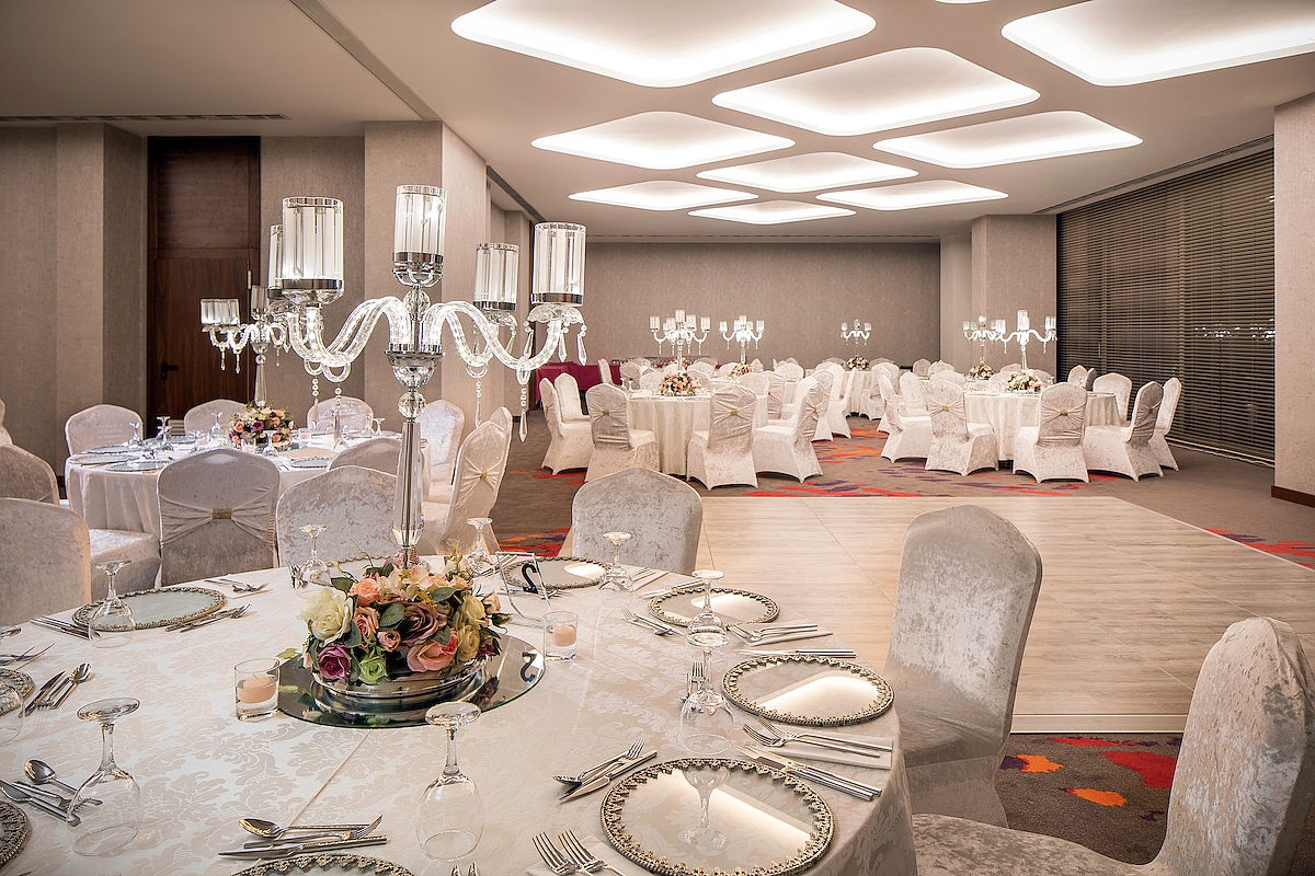 İleri teknolojiyle donatılmış, gün ışığı alan, araç girişine uygun, 5m tavan yüksekliğine sahip toplam 1070 m²?lik kolonsuz, ihtişamlı balo salonumuzla fuar, kongre ve yemekli organizasyonlarda rakipsiz bir seçenek sunuyoruz. Bunun yanı sıra tamamı gün ışığı alan, teraslı 50 m² ila 235 m² arasında 8 toplantı odası, Dorlion A?la Carte restaurantı ve Lionel Brasserie ile iş dünyasının vazgeçilmez adresi olmayı hedefliyoruz.