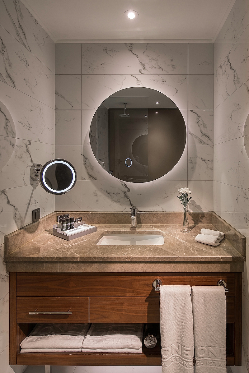 Biz üstlendiği otel projelerindeki ayrıcalıklı tasarım çizgisinden ötürü SPDO Design Office mimar Sabri Paşayiğit ve iç mimar Gülden Şener ile çalıştık. Mimarlarımız da bizim gibi mekanların bir hikaye çerçevesinde yaşatılmasını önemsiyor. İstanbul ?un tasarımda yorumlandığı proje, dekorasyonda kullanılan malzeme ve aksesuarları ile aslında bir tasarım otel . Otelin iç dekorasyonunda İtalyan Minimalist tarz hakim. Işık efekti ve oyunlarının olduğu tasarımda tüm mekânlarda ahşap ve bakır bir arada kullanıldı ve her bir obje özenle seçildi. Projede çok sayıda kadının etkisi var. Bu sebeple ?Women touch? otel olarak adlandırıyoruz tesisimizi.