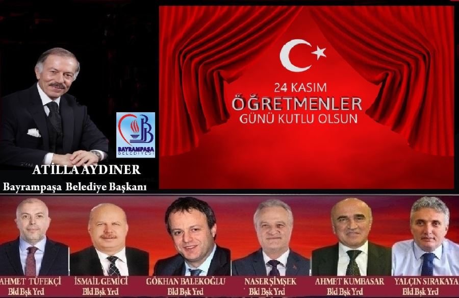 Bayrampaşa Belediye Başkanı Atila Aydıner ve Yardımcıları Ahmet Tüfekçi,Gökhan Balekoğlu,İsmail Gemici ,Naser Şimşek,Yalçın Sırakaya, Ahmet Kumbasar Yayınladıkları Mesajda Tüm Öğretmenlerin 24 Kasım Öğretmenler Gününü Kutladı...