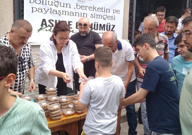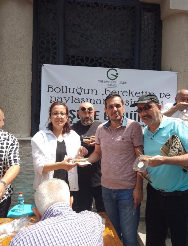 Dernek kurucusu ve mevcut başkanı Tülay Tahmaz’ın öncülüğünde idari yöneticiler ve Giresun gönüllülerin de birlikteliğiyle Bayrampaşa Orta Camiinde Cuma sonrası vatandaşlara Aşure ikramında bulunuldu.