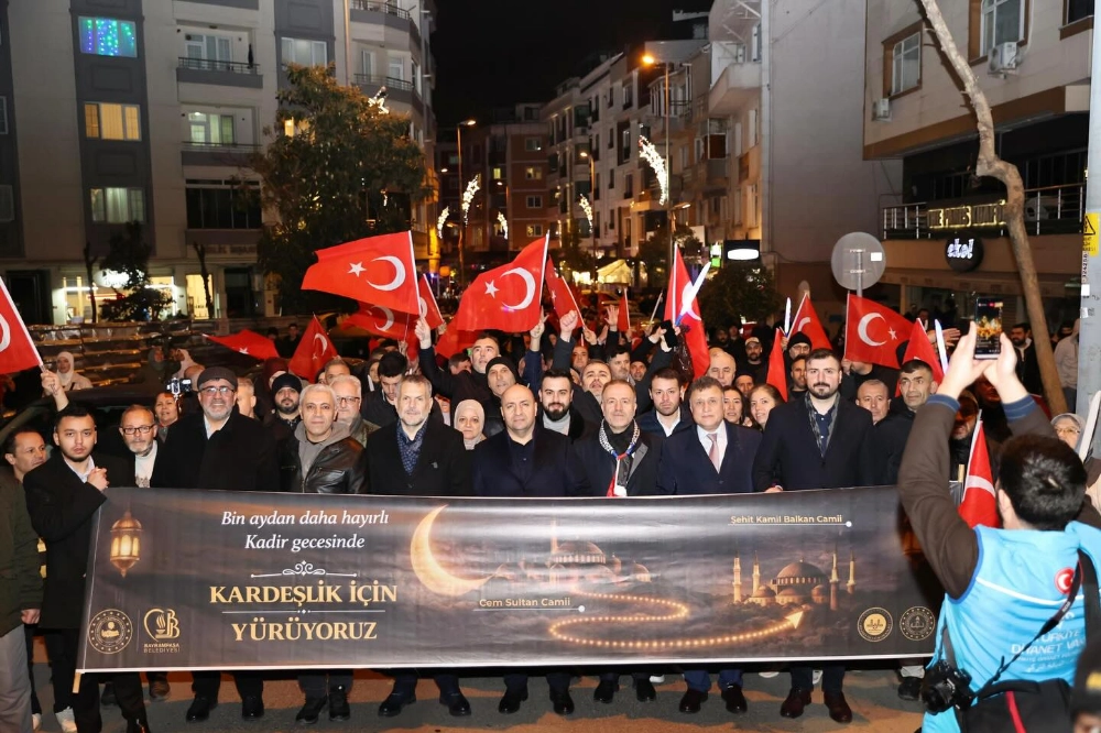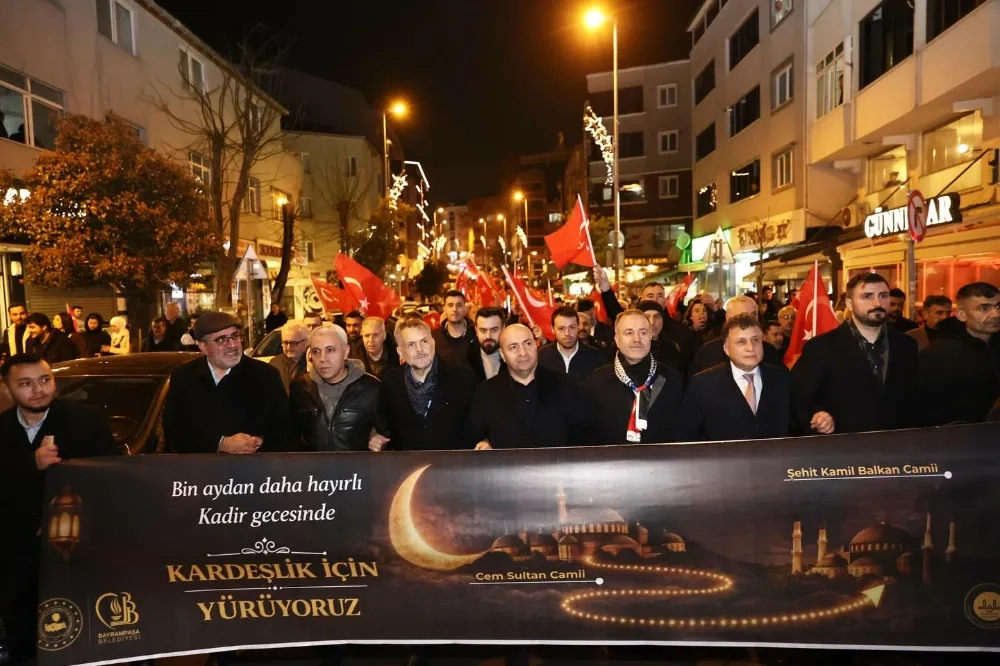 Bayrampaşa Kaymakamlığı, Belediye Başkanlığı ve Müftülük Birlikteliğiyle Kadir Gecesinde Düzenlenen Ramazan Ayı Uğurlama Etkinliği Cem Sultan Camii’nde Teravih Namazı Ardından Başlayıp Kandil Simidi Dağıtımı Yapılıp İlçe Erkanı Kaymakam Abdullah Çiftçi Belediye Başkanvekili İbrahim Akın, Başkan Yardımcıları, Meclis Üyeleri AK Parti İlçe Başkanı Mehmet Acar’ın Yanı Sıra, Bürokrasi, Siyasi, STK ve Cami Cemaati İle Birlikte Şehit Kamil Balkan Camine Kadar Yürüyüş Yapılarak İlahiler Söylenerek Büyük Bir İlgiyle Gerçekleşti.